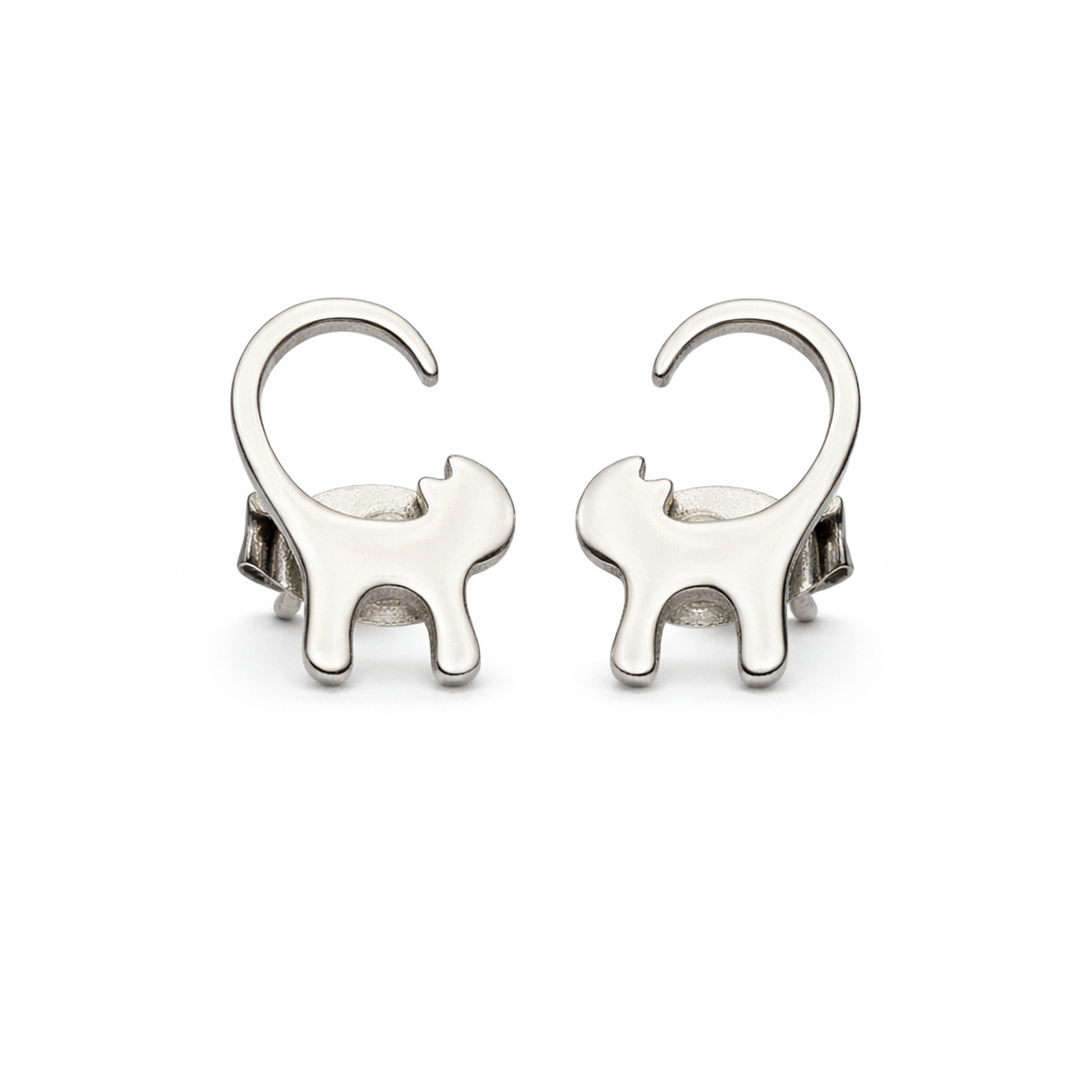 Each earring features a delicate cat silhouette with a gently curved tail, crafted from durable stainless steel with a smooth, polished finish. Lightweight and comfortable, they are perfect for daily wear and ideal for anyone looking for low-maintenance, long-lasting jewellery.